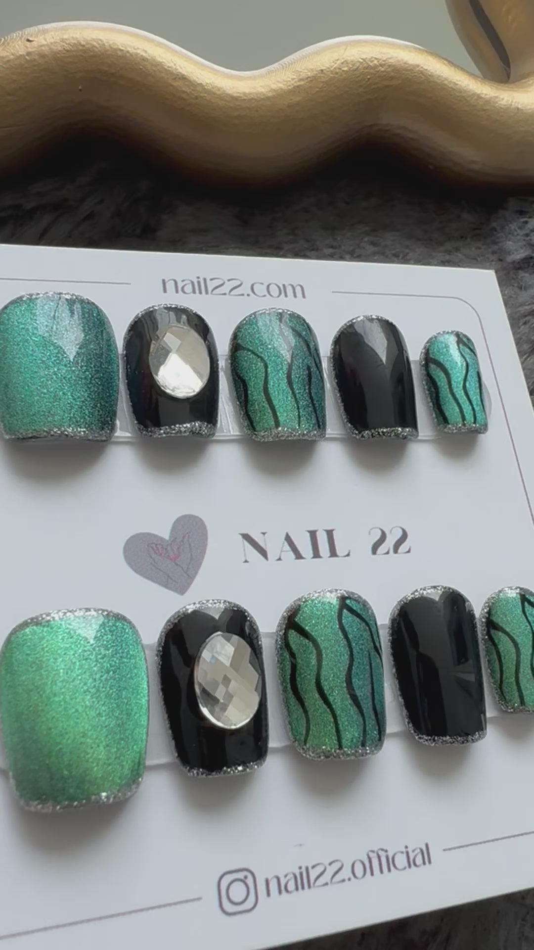 Elevate your style with this Emerald Sparkle Nail Set, featuring a striking combination of green and black. The sleek design and bold colors make a statement, perfect for those who want to stand out with style.